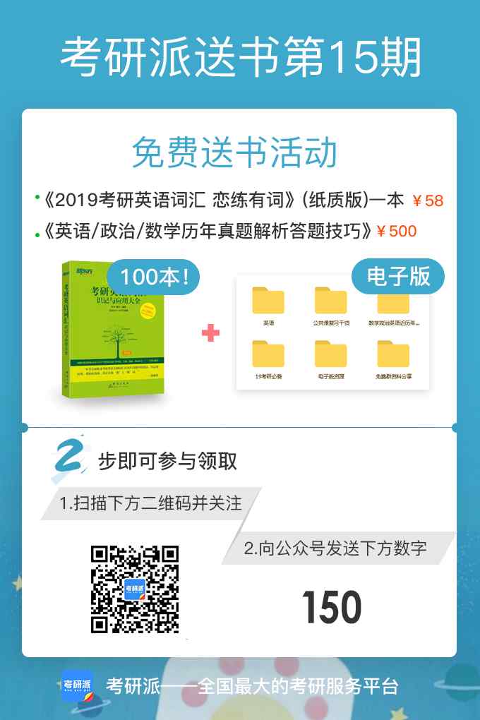 1. 掃描上方圖片二維碼,關(guān)注(考研派v)公眾號(hào)并回復(fù)”150“,即可獲得個(gè)人專屬邀請(qǐng)卡片和個(gè)人數(shù)字編號(hào);