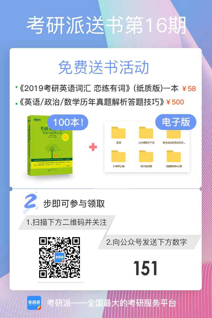 1. 掃描上方圖片二維碼,關注(考研派之家)公眾號并回復”151“,即可獲得個人專屬邀請卡片和個人數字編號;