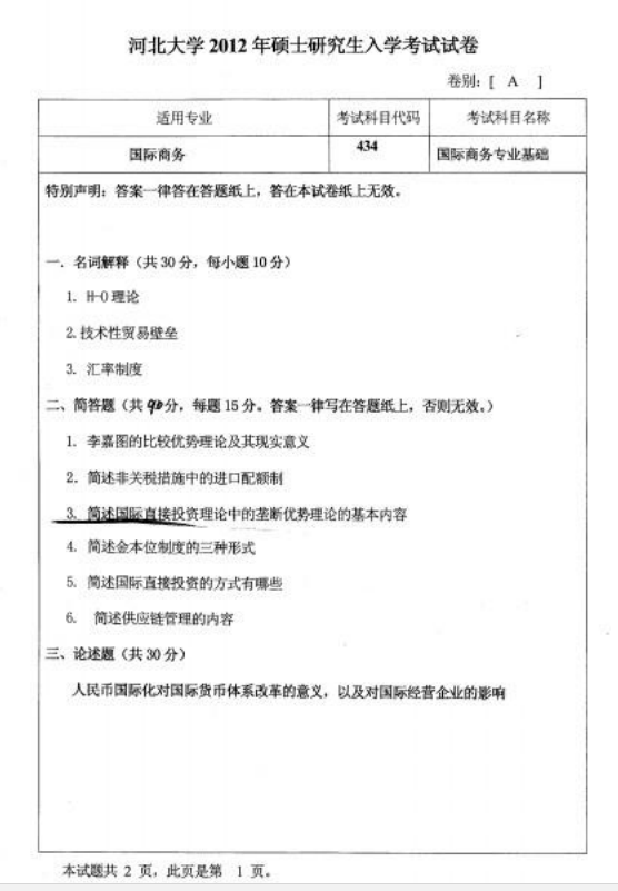 考研派 > 考研院校 > 河北 > 河北大學(xué) > 考研真題 > 2012年河北大學(xué)434國際商務(wù)專業(yè)基礎(chǔ)考研試題 2012年河北大學(xué)434國際商務(wù)專業(yè)基礎(chǔ)考研試題 【考研派】為大家提供2012年河北大學(xué)434國際商務(wù)專業(yè)基礎(chǔ)考研試題,更多考研資訊請關(guān)注我們網(wǎng)站的更新!敬請收藏本站。 文章來源:2012年河北大學(xué)434國際商務(wù)專業(yè)基礎(chǔ)考研試題 推薦閱讀 考研真題最近更新河北大學(xué)2012年335出版綜合素質(zhì)與能力考研試題河北大學(xué)2012年440新聞與傳播專業(yè)基礎(chǔ)考研試題河北大學(xué)2012年345漢語基礎(chǔ)考研試題2012年河北大學(xué)434國際商務(wù)專業(yè)基礎(chǔ)考研試題2012年河北大學(xué)431金融學(xué)綜合考研試題 相關(guān)分類 研究生院招生簡章聯(lián)系方式考研復(fù)試成績查詢研究生專業(yè)考研報錄比考研分?jǐn)?shù)線專業(yè)排名參考書目研究生導(dǎo)師考研問題考研真題考研經(jīng)驗
