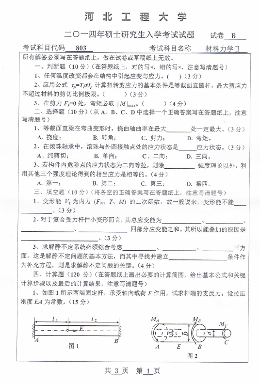 考研派 > 考研院校 > 河北 > 河北工程大學 > 考研真題 > 2014年河北工程大學材料力學Ⅱ考研試題 2014年河北工程大學材料力學Ⅱ考研試題 【考研派】為大家提供2014年河北工程大學材料力學Ⅱ考研試題,更多考研資訊請關注我們網站的更新!敬請收藏本站。 文章來源:2014年河北工程大學材料力學Ⅱ考研試題 推薦閱讀 考研真題最近更新2014年河北工程大學傳熱學Ⅰ考研試題2014年河北工程大學材料力學Ⅱ考研試題2014年河北工程大學材料力學Ⅰ考研試題2014年河北工程大學房屋建筑學考研試題2014年河北工程大學建筑綜合考研試題 相關分類 研究生院招生簡章聯系方式考研復試成績查詢研究生專業考研報錄比考研分數線專業排名參考書目研究生導師考研問題考研真題考研經驗
