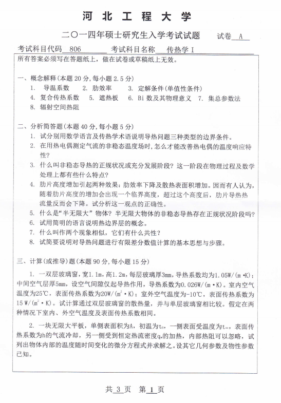 考研派 > 考研院校 > 河北 > 河北工程大學 > 考研真題 > 2014年河北工程大學傳熱學Ⅰ考研試題 2014年河北工程大學傳熱學Ⅰ考研試題 【考研派】為大家提供2014年河北工程大學傳熱學Ⅰ考研試題,更多考研資訊請關注我們網站的更新!敬請收藏本站。 文章來源:2014年河北工程大學傳熱學Ⅰ考研試題 推薦閱讀 考研真題最近更新2014年河北工程大學傳熱學Ⅰ考研試題2014年河北工程大學材料力學Ⅱ考研試題2014年河北工程大學材料力學Ⅰ考研試題2014年河北工程大學房屋建筑學考研試題2014年河北工程大學建筑綜合考研試題 相關分類 研究生院招生簡章聯系方式考研復試成績查詢研究生專業考研報錄比考研分數線專業排名參考書目研究生導師考研問題考研真題考研經驗