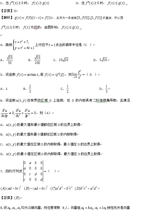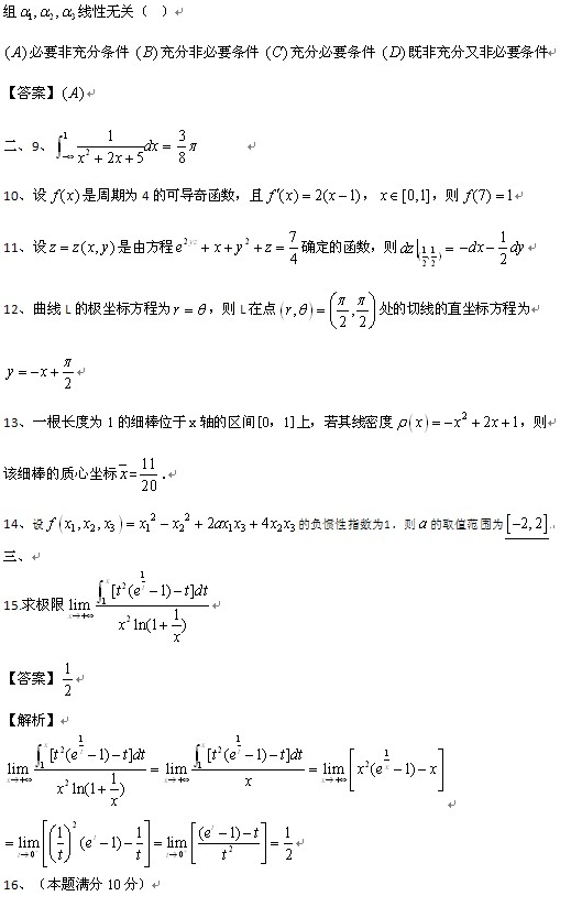考研派 > 考研報考網 > 考研大綱 > 考研大綱什么時候出 > 2014年考研數學二真題 2014年考研數學二真題 Add考研派研究生微信為你免費答疑 QQ咨詢:【考研派 okaoyan.com】 為大家提供2014年考研數學二真題,更多考研資訊請關注我們網站的更新!敬請收藏本站。 2014年考研數學二真題詳細介紹如下,希望可以幫助到您: 文章來源:2014年考研數學二真題上一頁 下一頁 推薦閱讀 2013年考研數學二難度 2013考研數學二真題 2013考研數學二真題答案 2013考研數學二國家線 2013考研數學二真題 2013年考研數學二難度 2014考研數學二國家線 2014考研數學二真題 2014考研數學二 2014年考研數學二 相關考研分類 考研大綱政治考研大綱在哪里看考研大綱什么時候出考研大綱哪里找考研大綱下載考研大綱在哪里下載考研大綱詞匯考研大綱解析 熱門考研院校 安徽大學 北京大學 北京工業大學 北京航空航天 北京化工大學 北京交通大學 北京科技大學 北京理工大學 北京林業大學 北京師范大學 北京體育大學 北京外國語 北京郵電大學 北京中醫藥 長安大學 重慶大學 大連海事大學 大連理工大學 電子科技大學 第二軍醫大學 第四軍醫大學 東北大學 東北林業大學 東北農業大學 東北師范大學 東華大學 東南大學 復旦大學 福州大學 廣西大學 貴州大學 國防科技大學 中國科學院 哈爾濱工業大學 河北工業大學 合肥工業大學 河海大學 華北電力大學 華東理工大學 華東師范大學 華東政法大學 華南理工大學 華南師范大學 華中科技大學 華中農業大學 華中師范大學 湖南大學 湖南師范大學 江南大學 吉林大學 暨南大學 蘭州大學 遼寧大學 內蒙古大學 南昌大學 南京大學 南京航空航天 南京理工大學 南京農業大學 南京師范大學 南開大學 清華大學 山東大學 上海財經大學 上海大學 上海交通大學 上海外國語 陜西師范大學 深圳大學 四川大學 四川農業大學 蘇州大學 太原理工大學 天津大學 天津醫科大學 同濟大學 對外經濟貿易 武漢大學 武漢理工大學 廈門大學 西安電子科技 西安交通大學 西北大學 西北工業大學 西北農林科技 西南財經大學 西南大學 西南交通大學 新疆大學 延邊大學 云南大學 浙江大學 鄭州大學 中國傳媒大學 中國地質大學 中國地質大學 中國海洋大學 中國科學技術 中國礦業大學 中國農業大學 中國人民大學 中國石油大學 中國石油大學 中國藥科大學 中國政法大學 中南財經政法 中南大學 中山大學 中央財經大學 中央民族大學 中央音樂學院