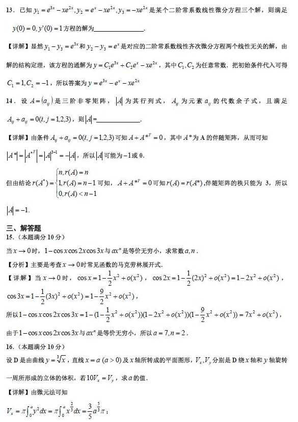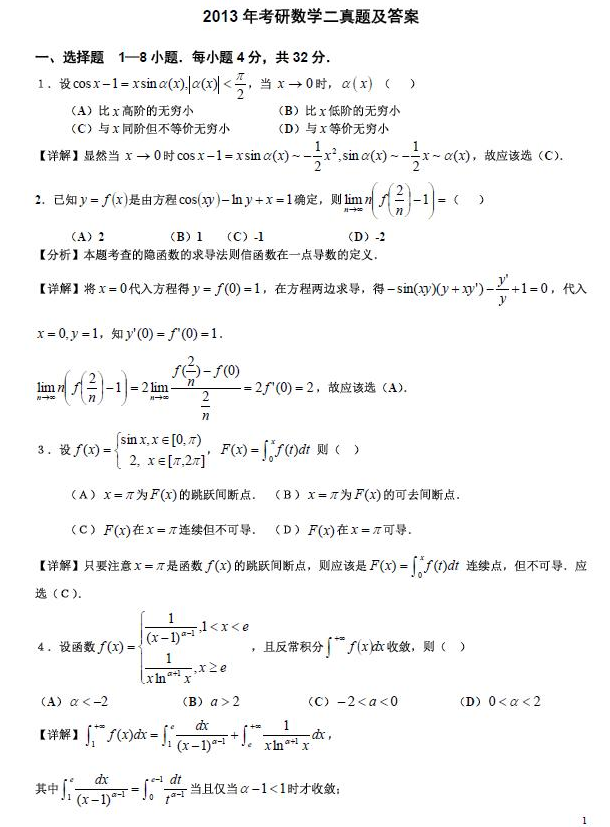 2013考研數(shù)學(xué)二真題答案詳細(xì)介紹如下,希望可以幫助到您: