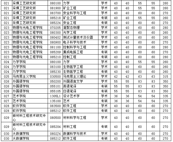 太原理工大學研究生分數線2018