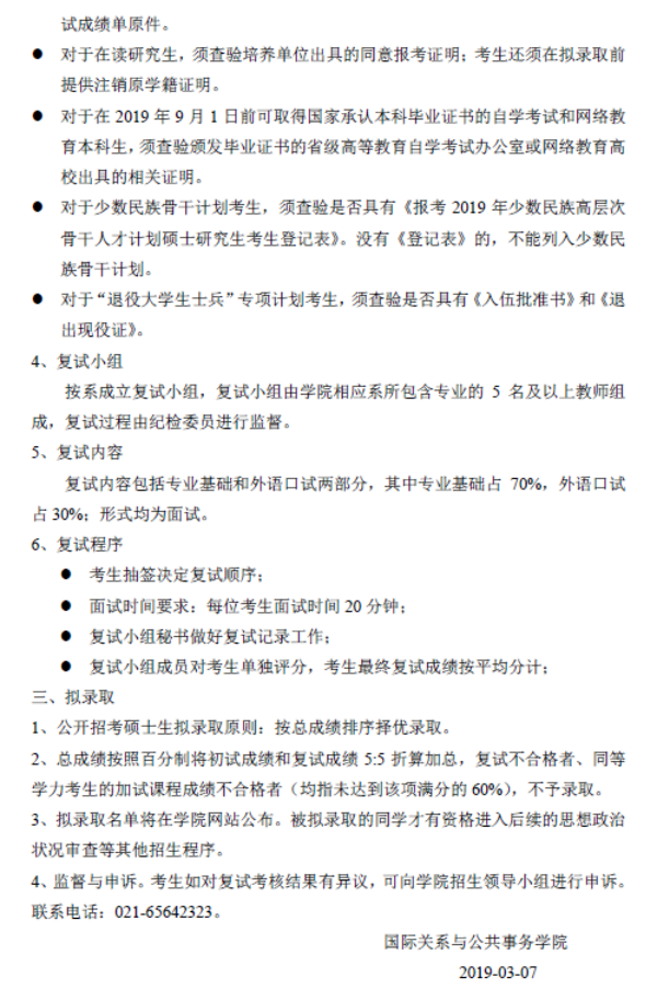 2019年旦大學(xué)國際關(guān)系與公共事務(wù)學(xué)院碩士生復(fù)試實(shí)施細(xì)則