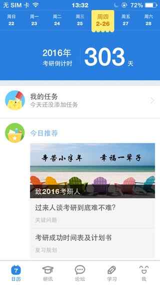 考研派APP是由考研網精心為iPhone用戶打造的一款手機閱讀類APP,但是安卓系統的手機也能使用的哦,考研沖刺,爭分奪秒,為夢想而戰,計劃與效率最重要,為了能夠制定任務、跟蹤復習進度、精簡信息分類的考研派APP是必不可少的。考研派首頁設計有考研倒計時。一打開軟件就能看到日期,會比較好。定期推送考研信息之類的。還挺好的。更多具體實用性的選項只有等大家用過了之后才能給予評價。