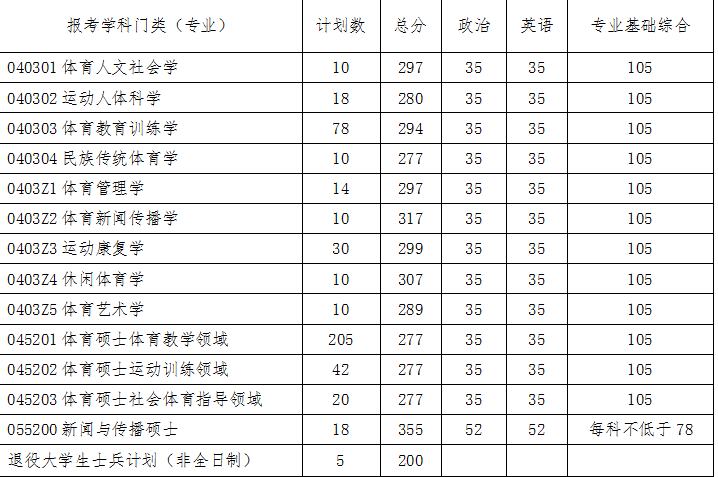 (一)2020年沈陽(yáng)體育學(xué)院碩士研究生招生考試考生復(fù)試分?jǐn)?shù)線