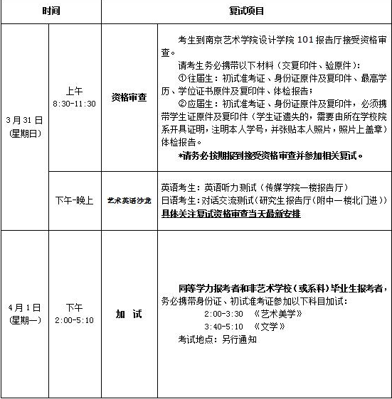 具體名單詳見我校研究生處網站發布的《關于公布南京藝術學院2020年碩士研究生復試名單的通知》四、復試工作時間安排(一)第一志愿考生復試時間我校復試工作擬于2020年5月28日啟動。