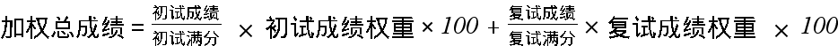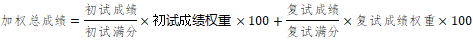 復試結束后,各學院將匯總考生各科目復試成績,并按照學校規(guī)定在各學院網站公示。加權總成績計算方式: