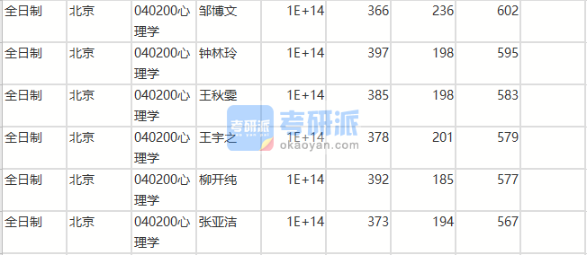 - 北京師范大學心理學研究生分數線