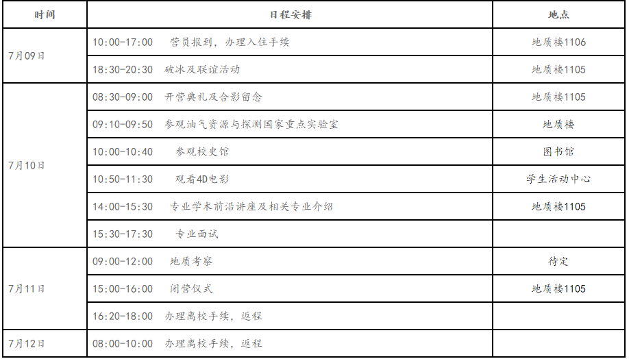 注:具體日程安排請留意中國石油大學(北京)地球科學學院網站相關通知。營員請自行提前預訂往返車票,活動舉辦方不提供訂票服務。