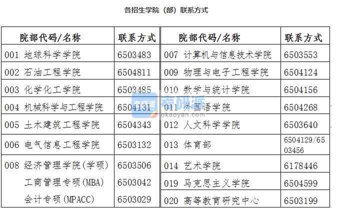 各招生學(xué)院(部)聯(lián)系方式