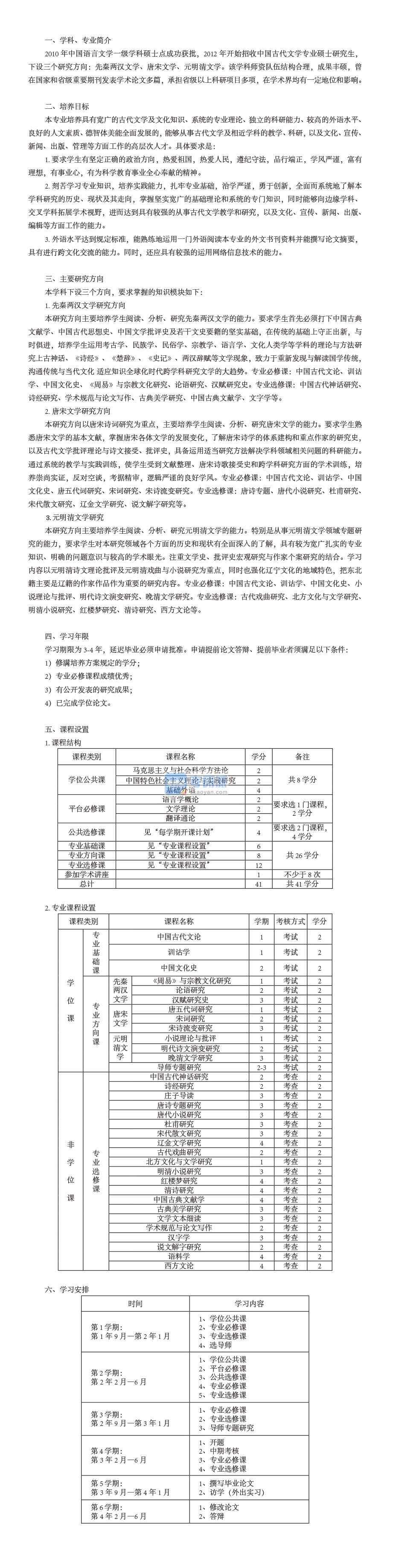 大連外國語大學中國古代文學碩士研究生培養方案