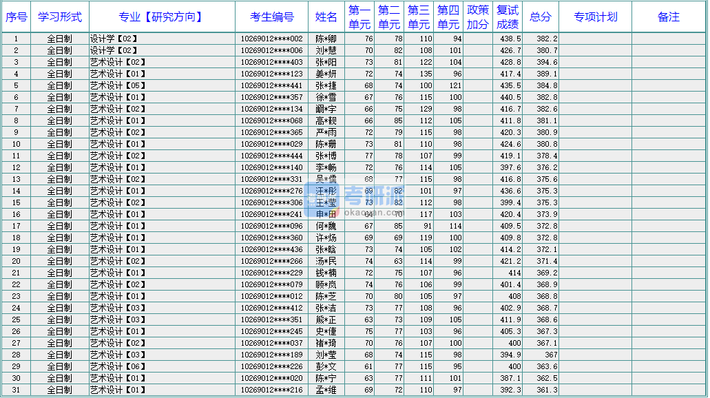 以下是2020年的錄取名單,成績從高到底,供準備報考該專業研究生的同學參考:
