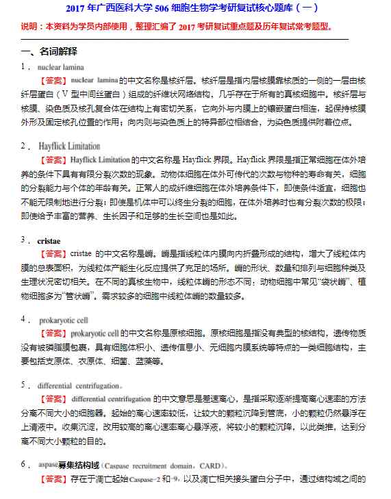 2017年廣西醫科大學506細胞生物學考研復試真題