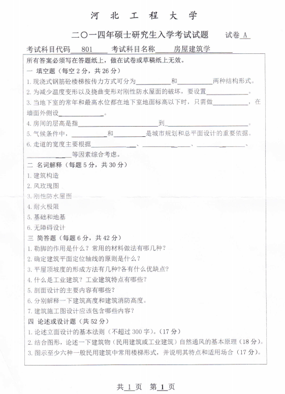 河北工程大學考研問答:建筑學考試范圍及其真題