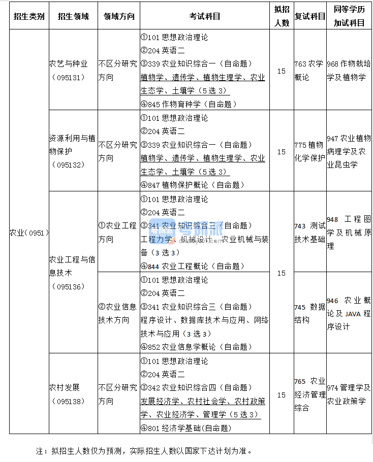 (一)招生學(xué)位類別:農(nóng)業(yè)碩士(0951)