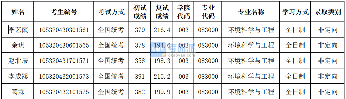 | 備 注: | 復試專業課 F0301環境化學 環境毒理學和環境工程微生物學各占50% |