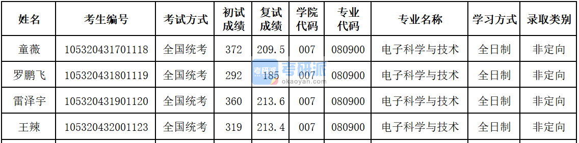 以下是2020年的錄取名單,成績從高到底,供準備報考該專業(yè)研究生的同學參考:
