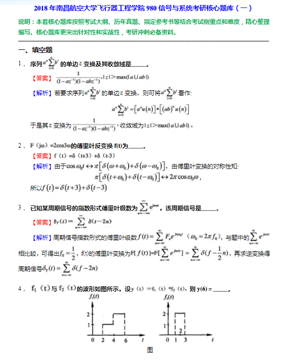 2018年南昌航空大學飛行器工程學院980信號與系統考研真題