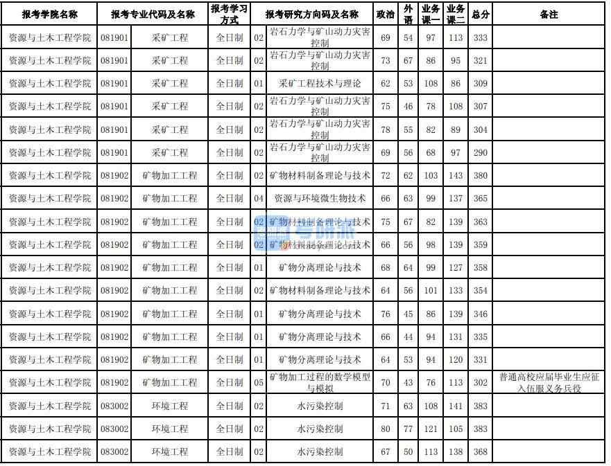 - 東北大學礦物加工工程研究生分數線