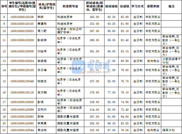北京大學(xué)攝影測量與遙感2020年研究生錄取分?jǐn)?shù)線
