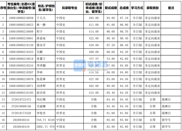 以下是2020年的錄取名單,成績從高到底,供準備報考該專業研究生的同學參考: