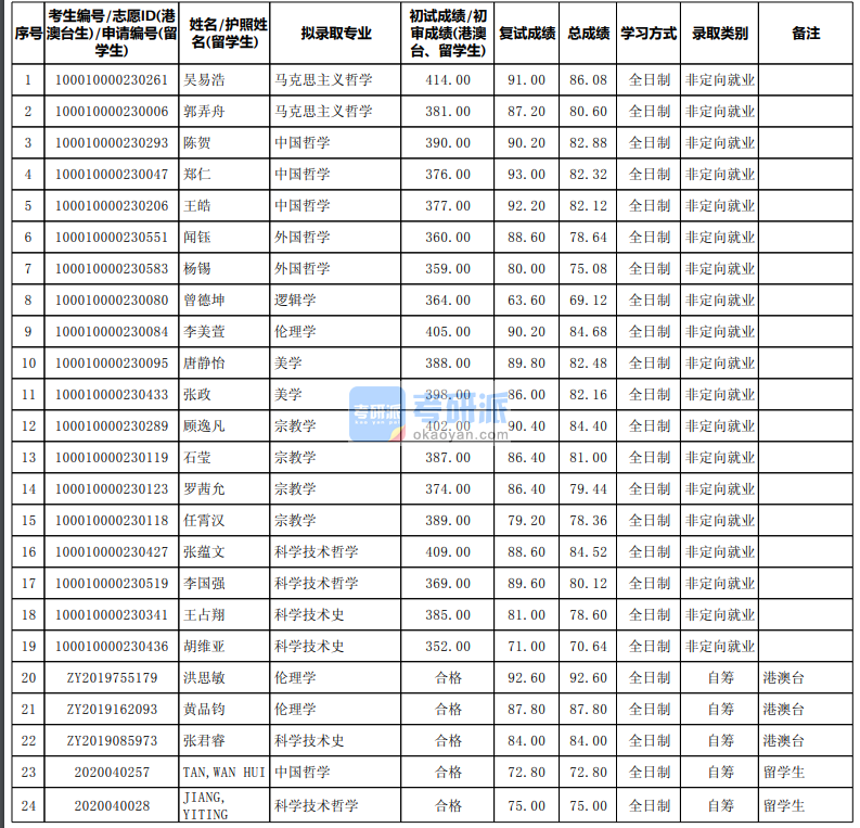 以下是2020年的錄取名單,成績從高到底,供準備報考該專業研究生的同學參考: