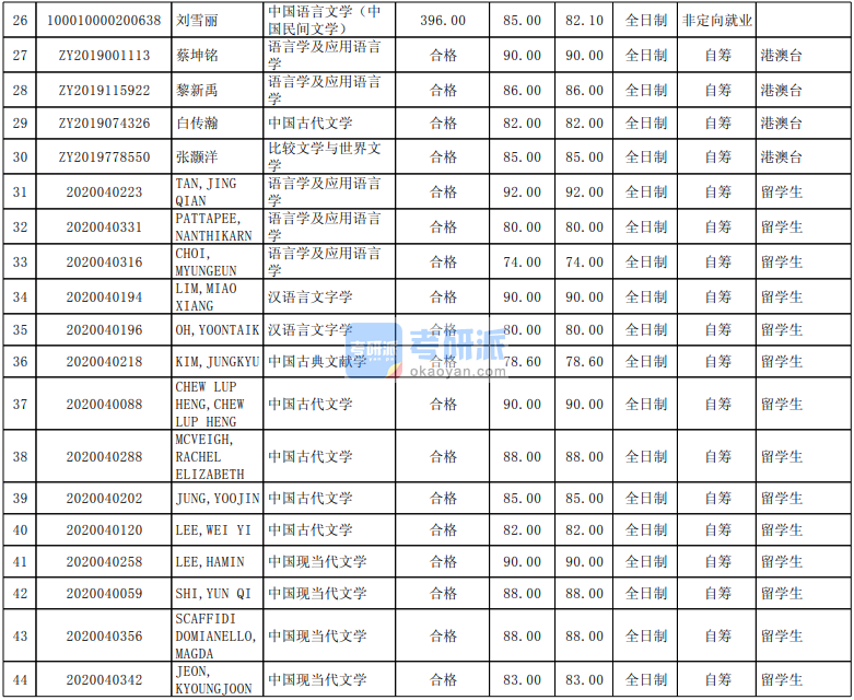 北京大學(xué)中國(guó)古代文學(xué)2020研究生錄取分?jǐn)?shù)線