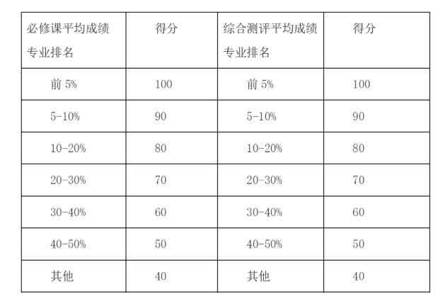 (1)必修課和綜合測評平均成績專業排名得分計算方法: