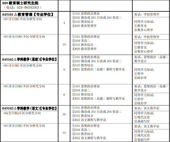 沈陽師范大學:19學院招生目錄3(教育碩士研究生院、文學院)