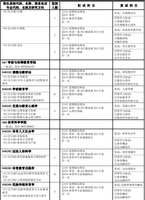 沈陽師范大學:19學院招生目錄2(教育科學學院、教育專業發展學院、學前與初等教育學院)