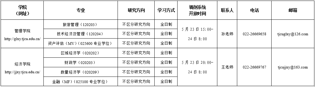 2020年天津商業大學碩士研究生調劑信息(第二批)