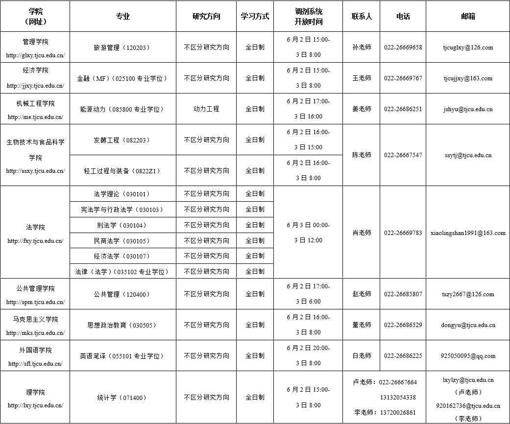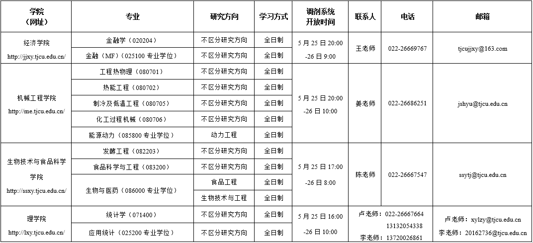 接收調劑的專業、調劑系統開放時間及聯系方式