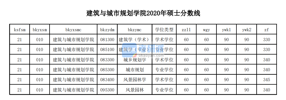 2020年同濟大學建筑與城市規劃學院碩士考研復試分數線