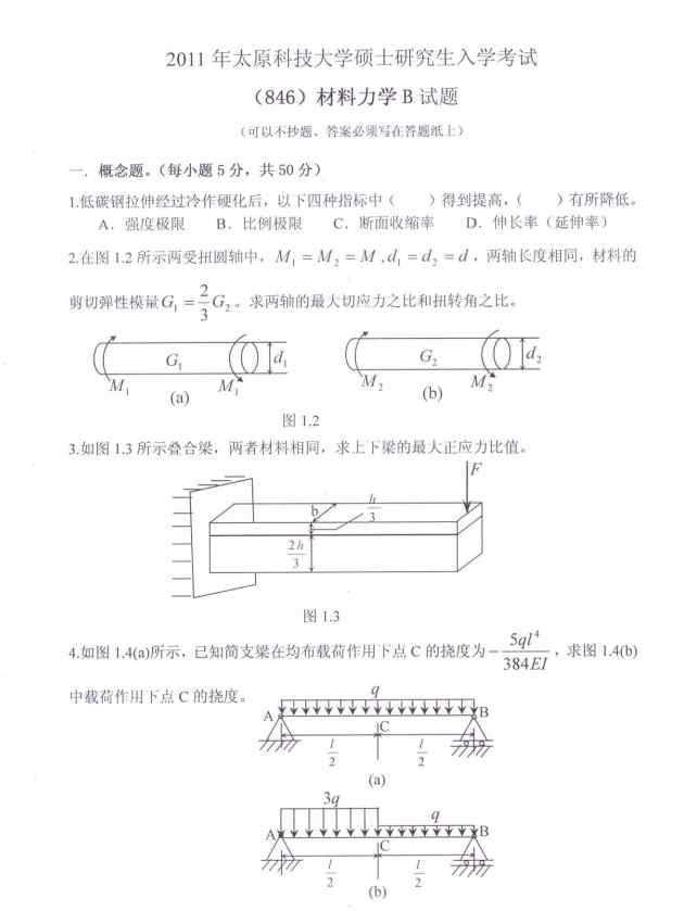 復試筆試科目:918力學概論(以材料力學為主)02微納米與復合材料力學