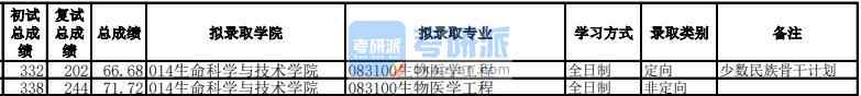 電子科技大學生物醫學工程2020年研究生錄取分數線