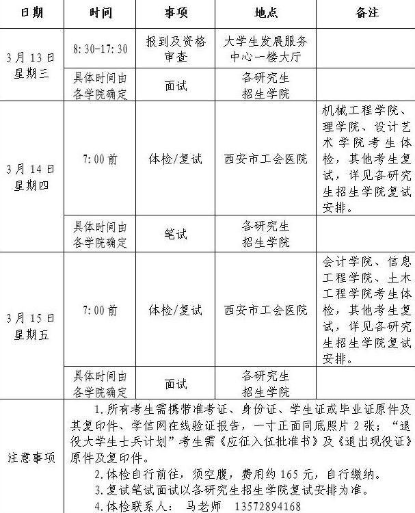 西京學(xué)院碩士研究生考研復(fù)試時間安排