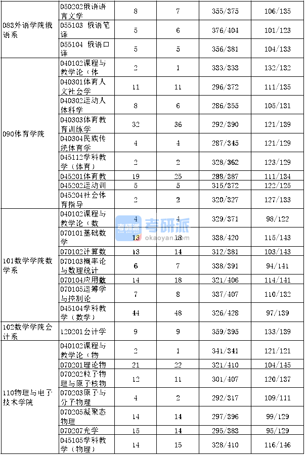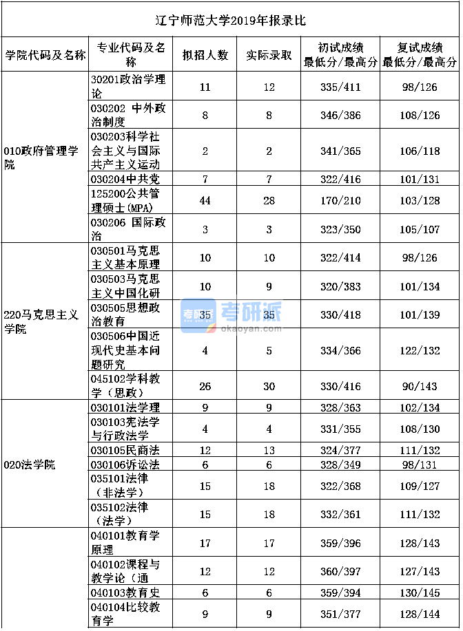 2019年遼寧師范大學(xué)考研報名錄取比內(nèi)容如下,更多考研資訊請關(guān)注我們網(wǎng)站的更新!敬請收藏本站,或下載我們的考研派APP和考研派微信公眾號(里面有非常多的免費考研資源可以領(lǐng)取,有各種考研問題,也可直接加我們網(wǎng)站上的研究生學(xué)姐微信,全程免費答疑,助各位考研一臂之力,爭取早日考上理想中的研究生院校。)