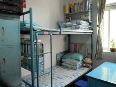 本科生是8人間,就是八張床,上下鋪,一般是七個人住,一張床放行李,中間有一張大桌子,占掉了很大的空間,比較擁擠。所以,要合理運用自己床上的空間……