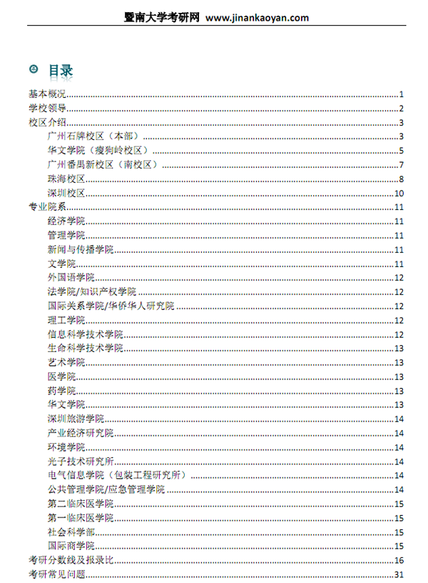 內容手冊里面包含各種暨南大學的考研信息:校園風景、各學院概況、考研報錄比、考研分數線、研究生招生電話、考研經驗、考研資料和輔導的購買方式、暨南大學考研QQ群、學姐微信號等信息,還有學姐學長定期答疑QQ群號。手冊厚度為60頁。