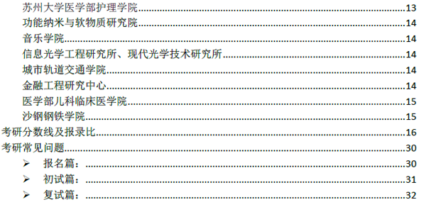 內(nèi)容手冊(cè)里面包含各種蘇大的考研信息:校園風(fēng)景、各學(xué)院概況、考研報(bào)錄比、考研分?jǐn)?shù)線(xiàn)、研究生招生電話(huà)、考研經(jīng)驗(yàn)、考研資料和輔導(dǎo)的購(gòu)買(mǎi)方式、蘇大考研QQ群、學(xué)姐微信號(hào)等信息,還有學(xué)姐學(xué)長(zhǎng)定期答疑QQ群號(hào)。