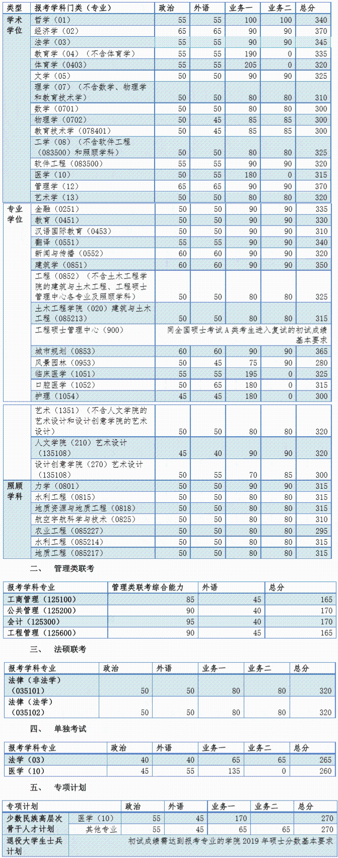 | 報考學科專業 | 管理類聯考綜合能力 | 外語 | 總分 | |||||||||||||
