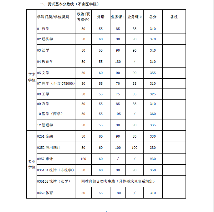 根據教育部規定,結合學校實際情況,校研究生招生領導小組經會議研究決定,2021 年碩士研究生入學考試復試基本分數線如下: