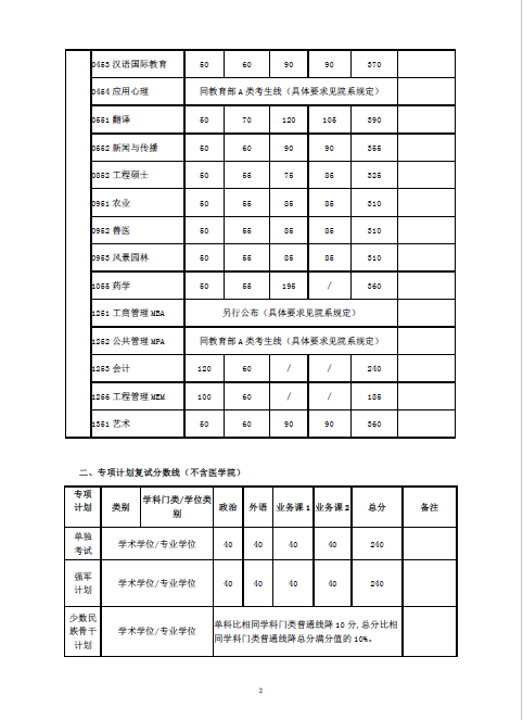 同教育部“少數民族高層次骨干人才計劃”復試基本分數線 |