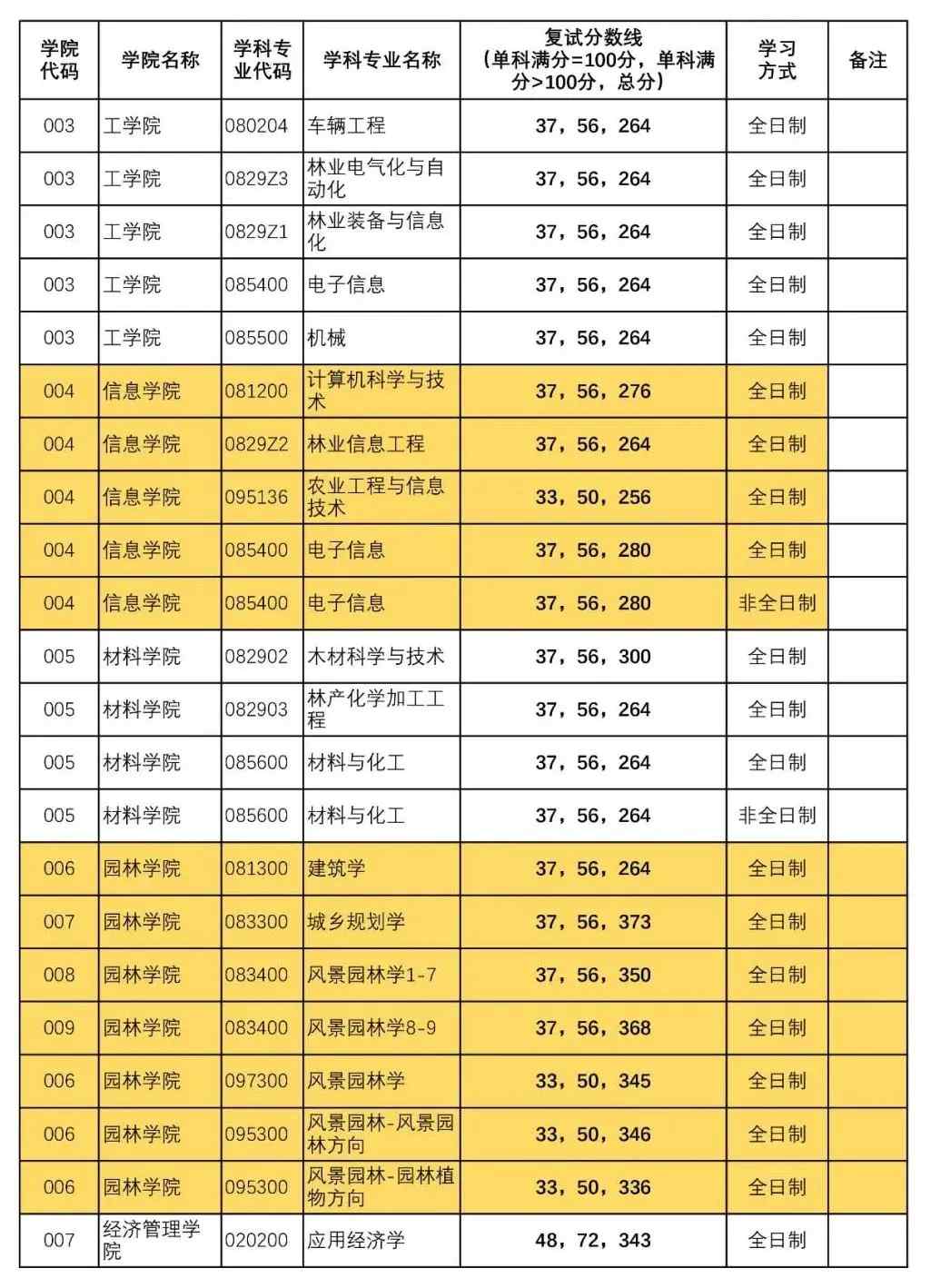| 北京林業大學2021年碩士研究生招生考試復試分數線 | ||||||