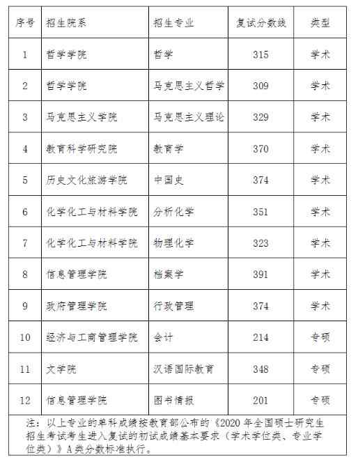根據我校一志愿上線人數,除以下專業外我校的復試分數線原則上采用教育部公布的《2018年全國碩士研究生招生考試考生進入復試的初試成績基本要求(學術學位類、專業學位類)》A類分數標準。