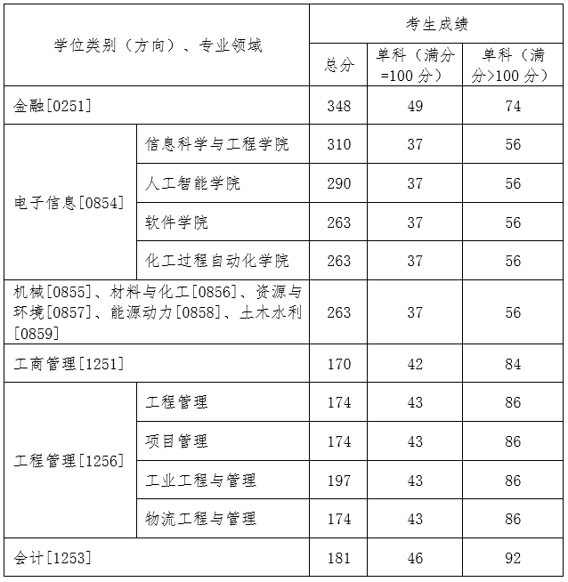| 考試方式 | 學(xué)位類別(方向)、專業(yè)領(lǐng)域 | 考生初試成績要求 |