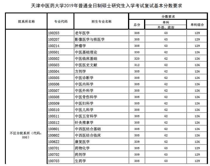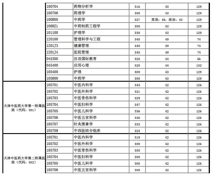 注:1.天津中醫藥大學2021年退役大學生士兵專項計劃碩士研究生入學考試復試基本分數 要求總分不低于249分。 2.天津中醫藥大學2021年少數民族高層次骨干人才計劃碩士研究生入學考試復試基本分數要求總分不低于249 分(單科滿分=100分的科目,單科線不低于30分;單科滿分>100分,單科線不低于45分)。 3.各復試名單最后一名有相同分數時,相同分數者均進入復試。 |