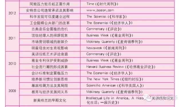 歷年考研英語閱讀理解題目來源出處統計